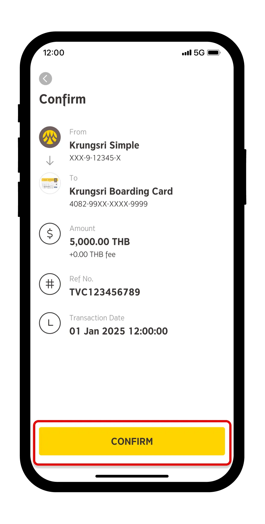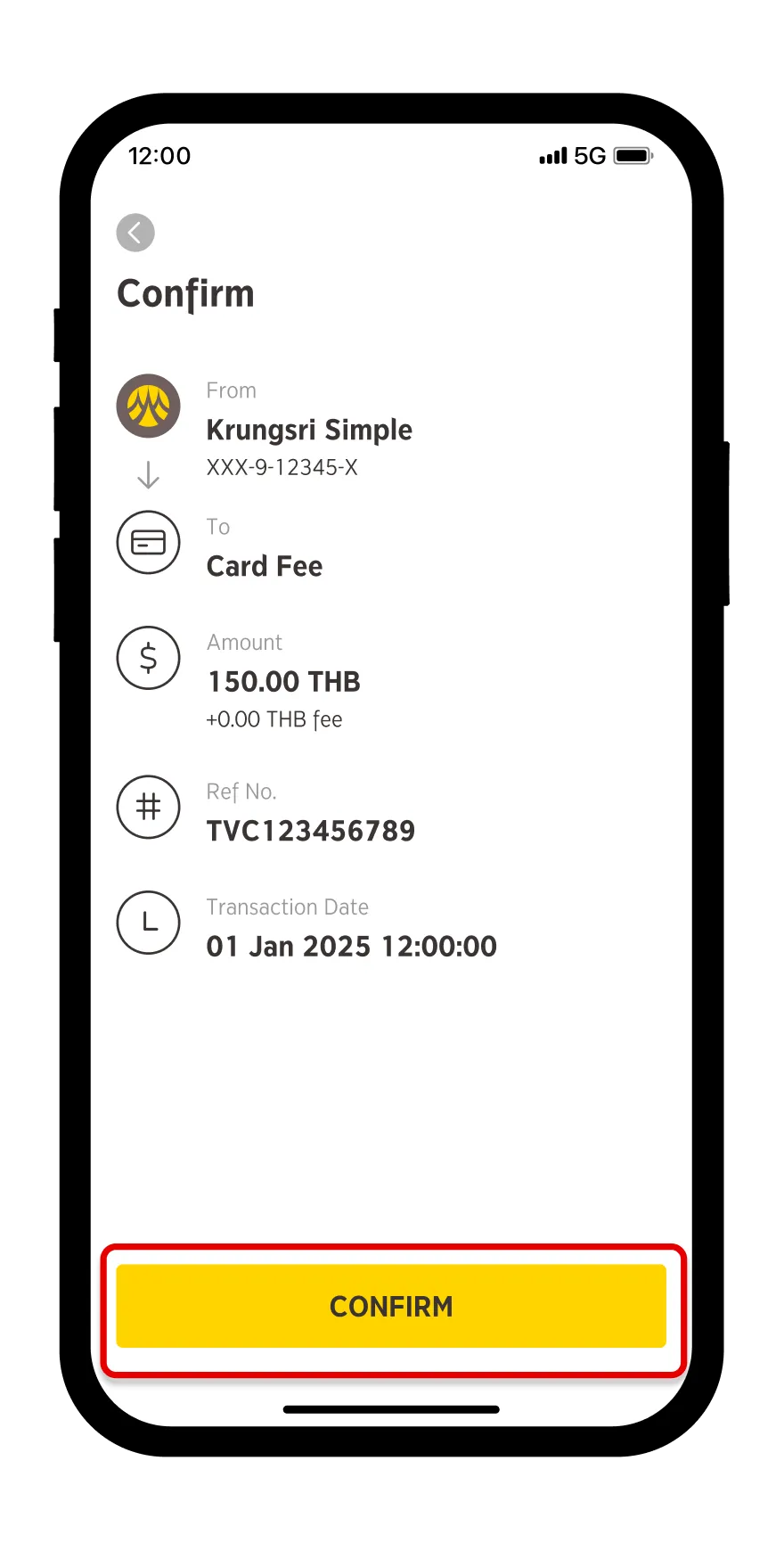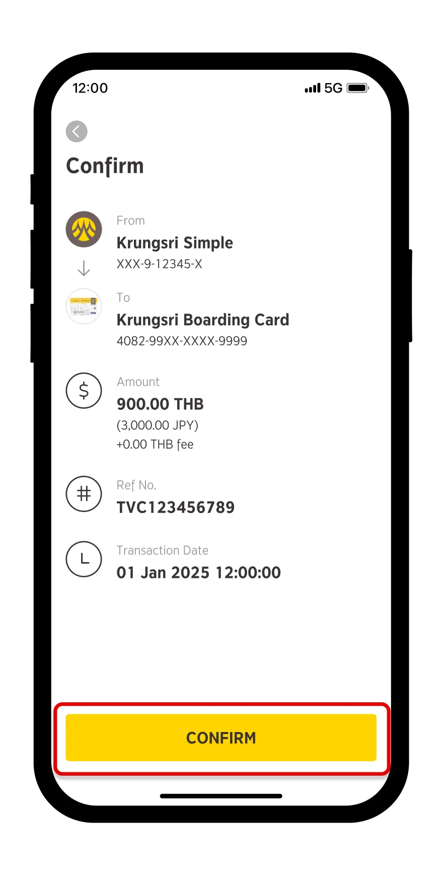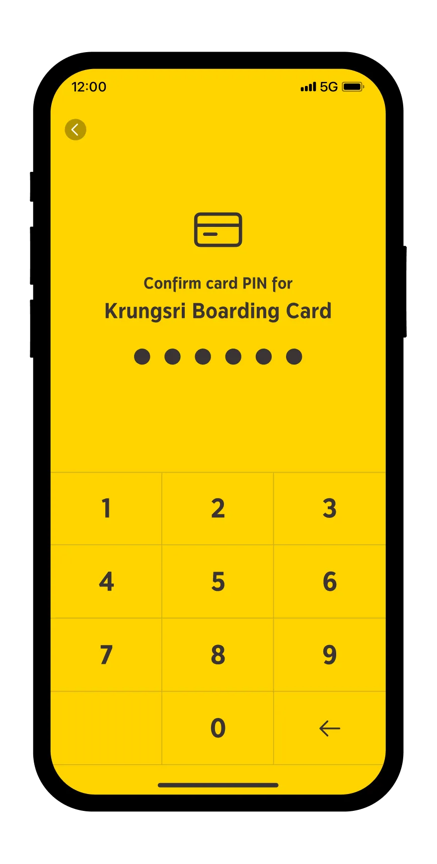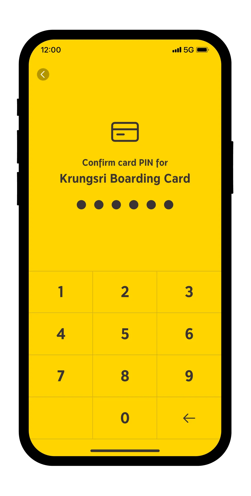 Krungsri Boarding Card requires 6-digit PIN to proceed the transaction.