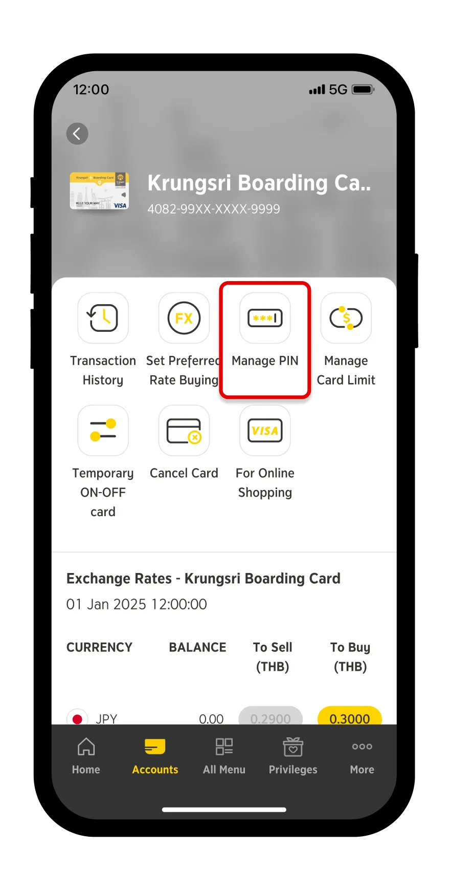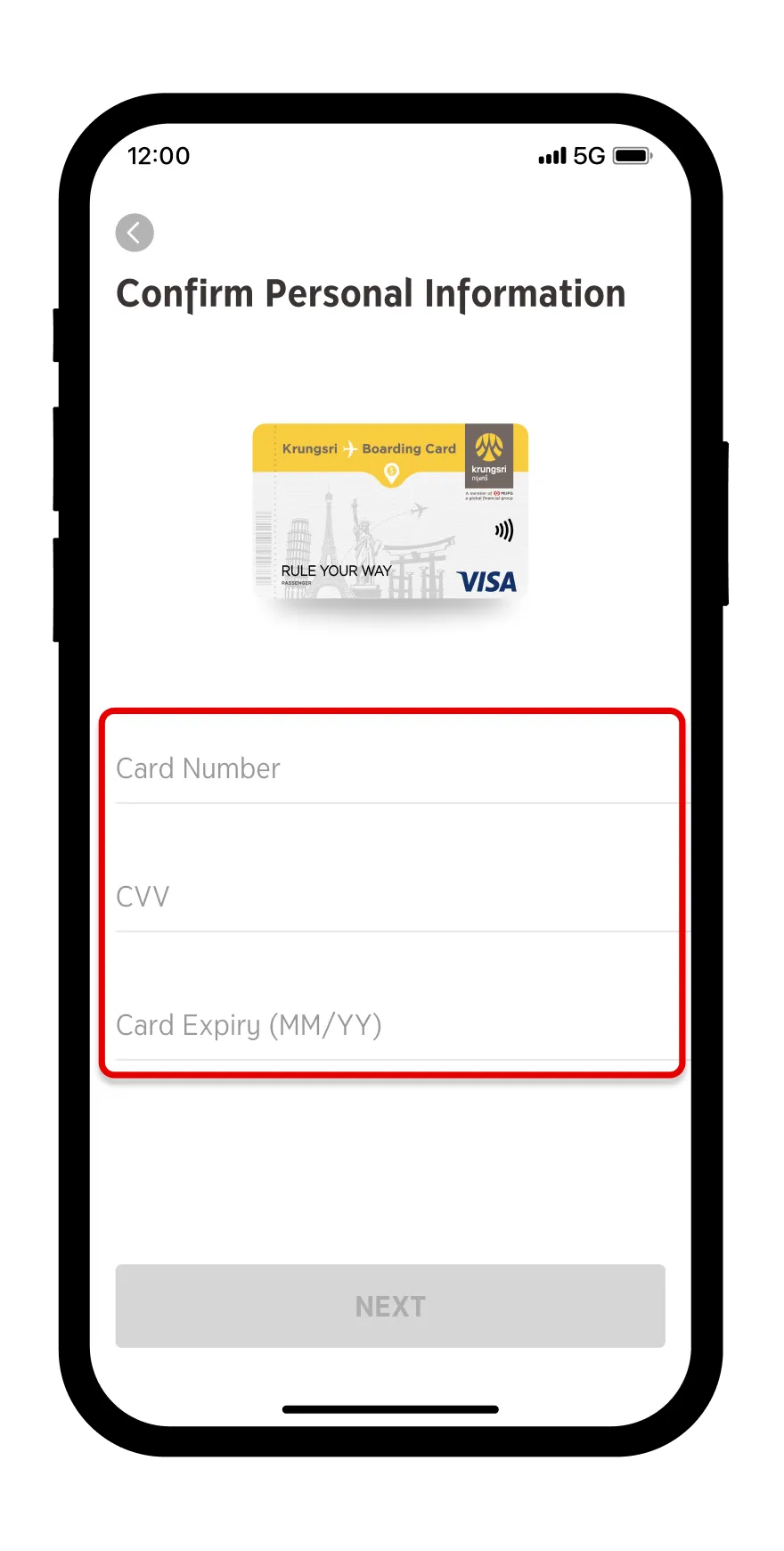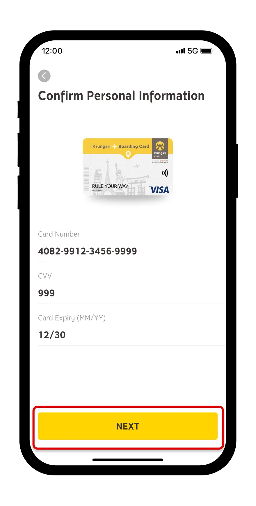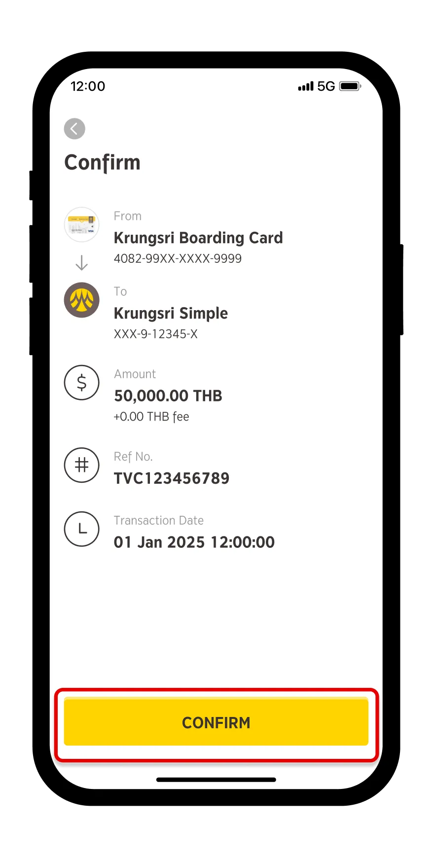 Krungsri Boarding Card requires 6-digit PIN to proceed the transaction.