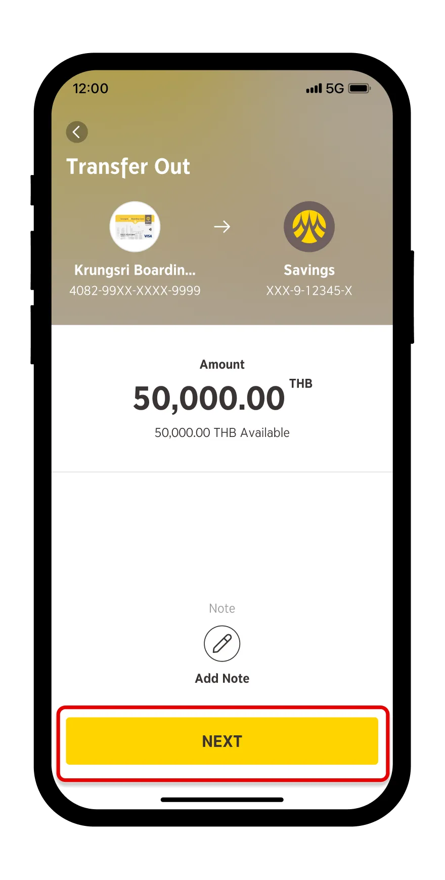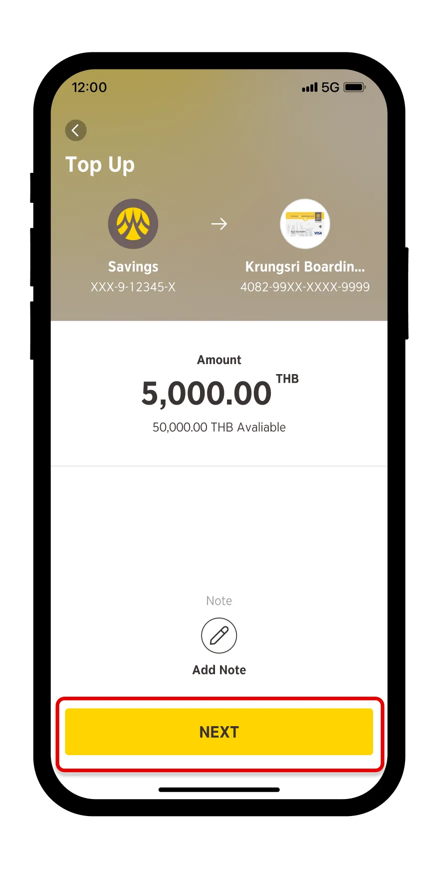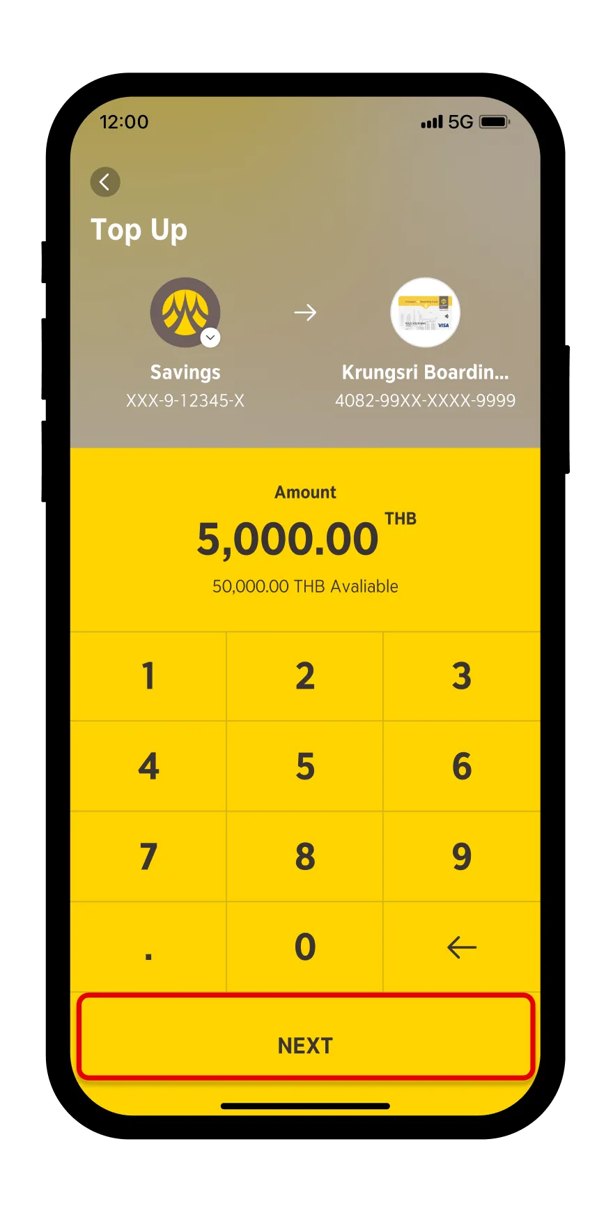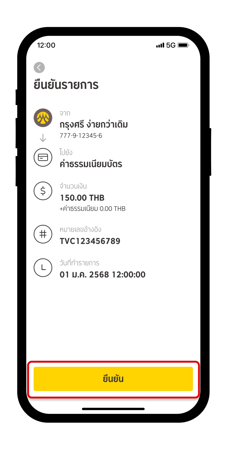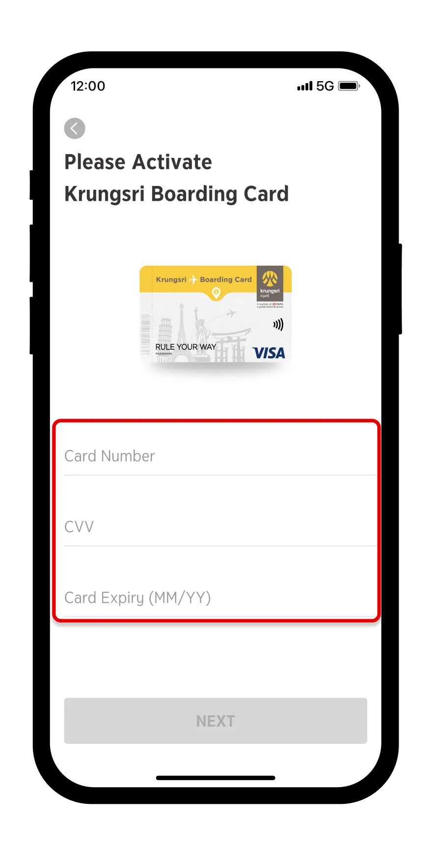 Krungsri Boarding Card requires 6-digit PIN to proceed the transaction.