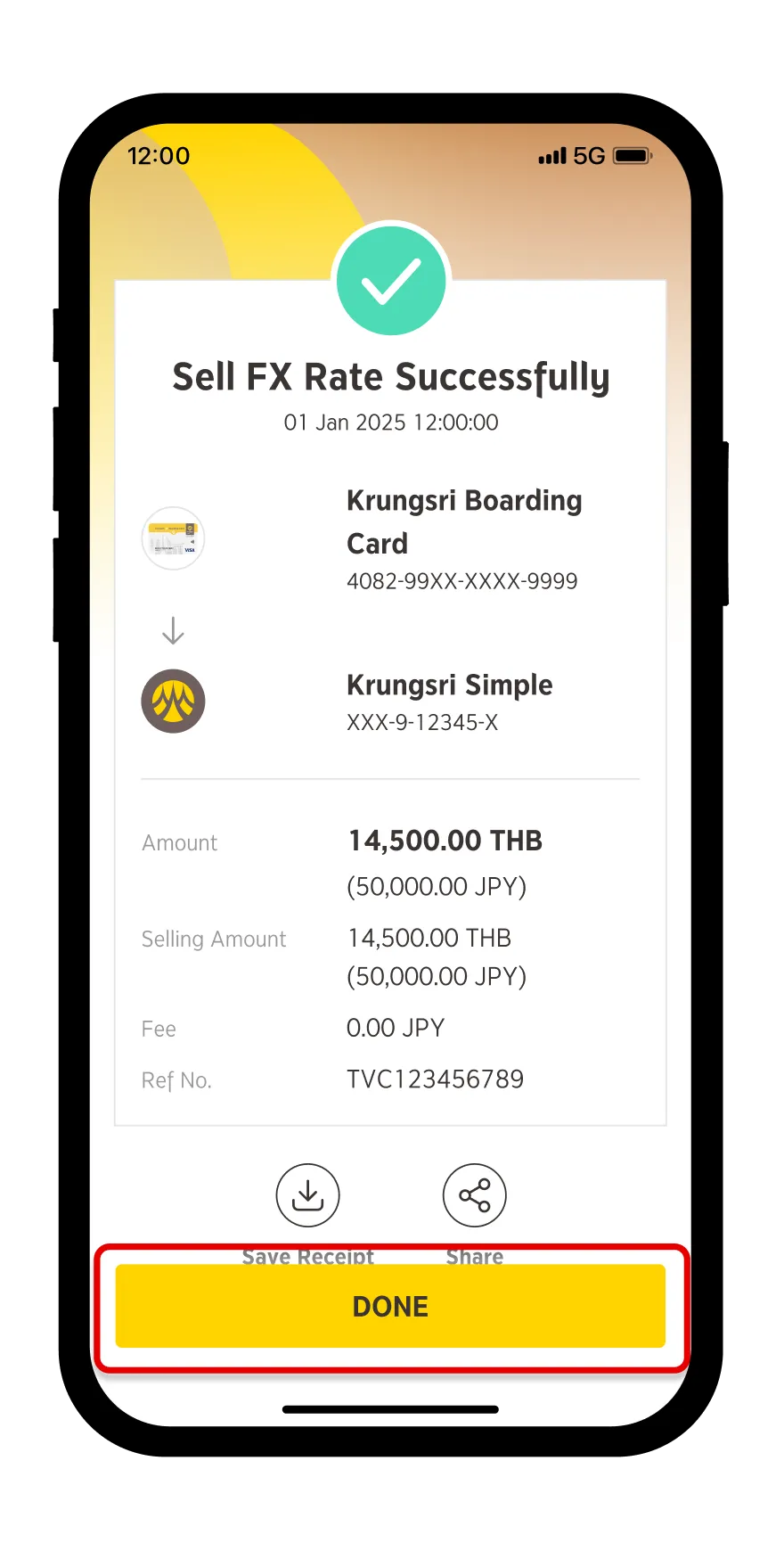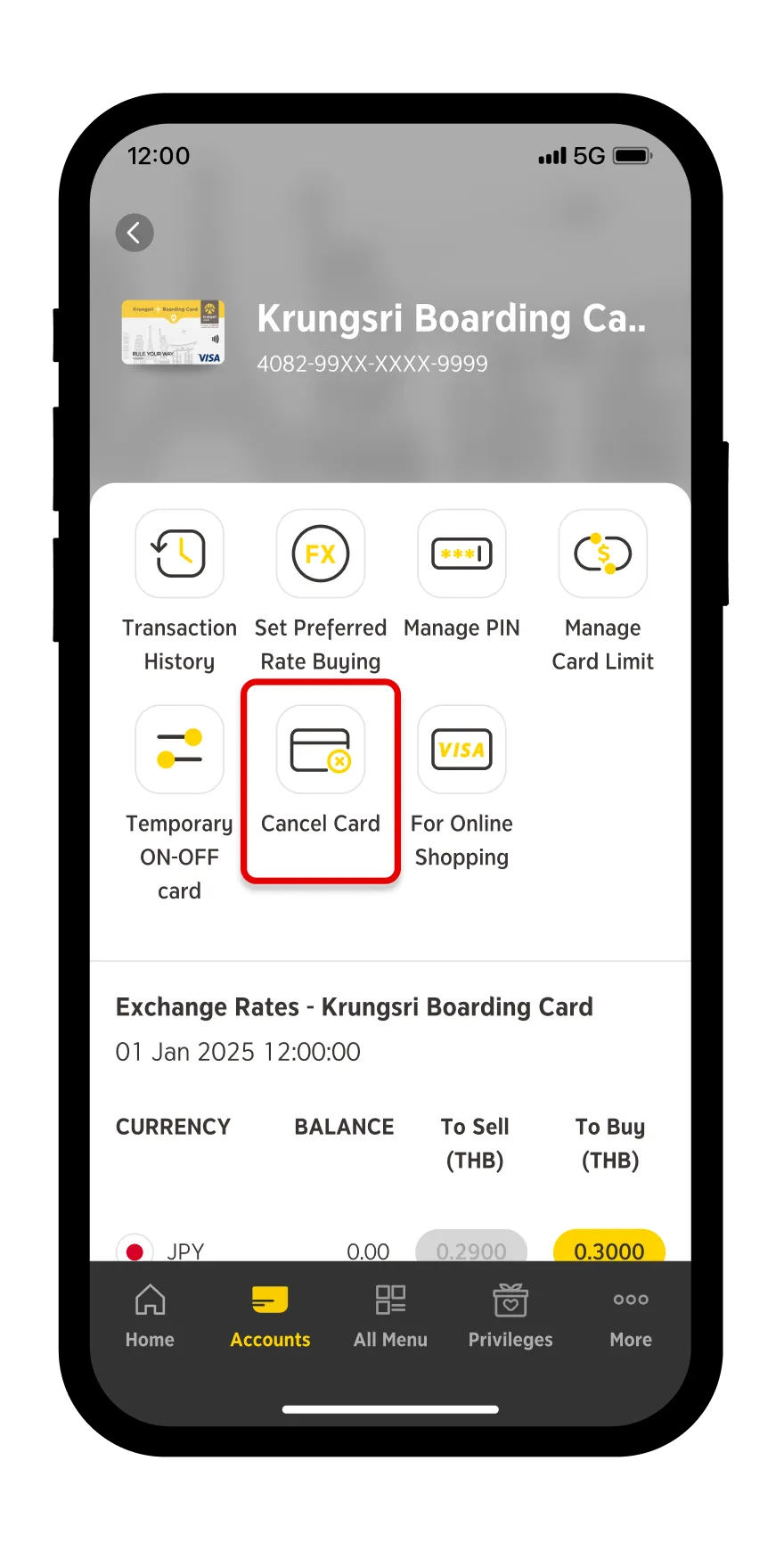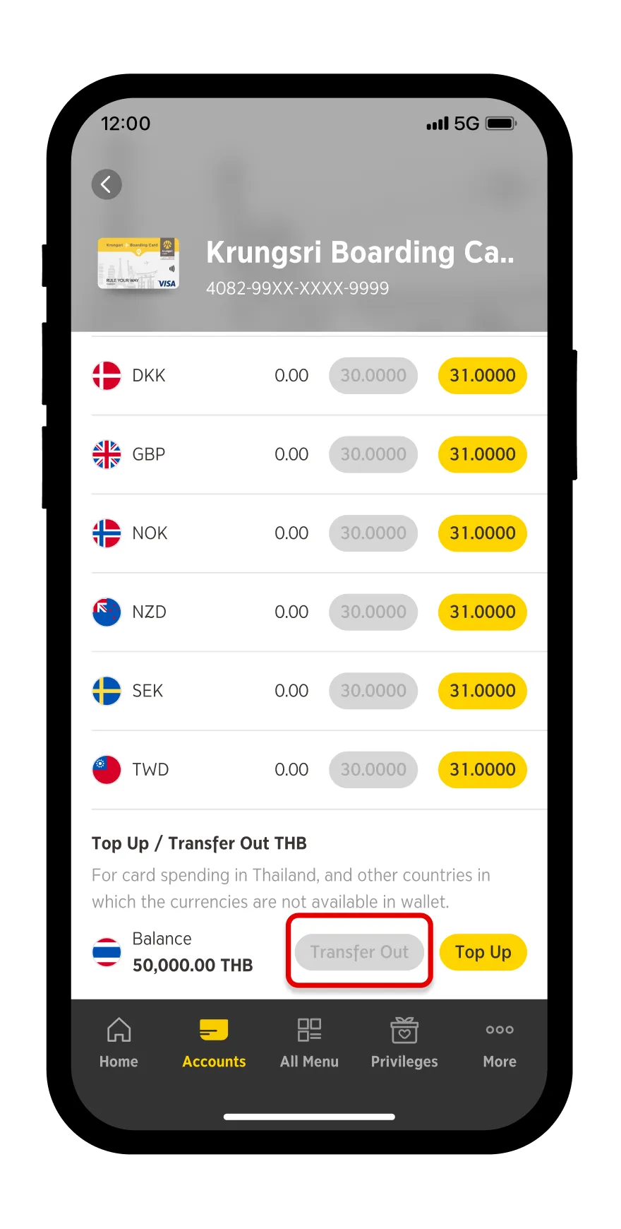 Case 2: If the cardholders don't want to continue using the card, they can sell all existing FX currencies in the card through krungsri app, whereby the fund will be transferred to designated account. Any Thai baht currency must be transferred to the said account as well