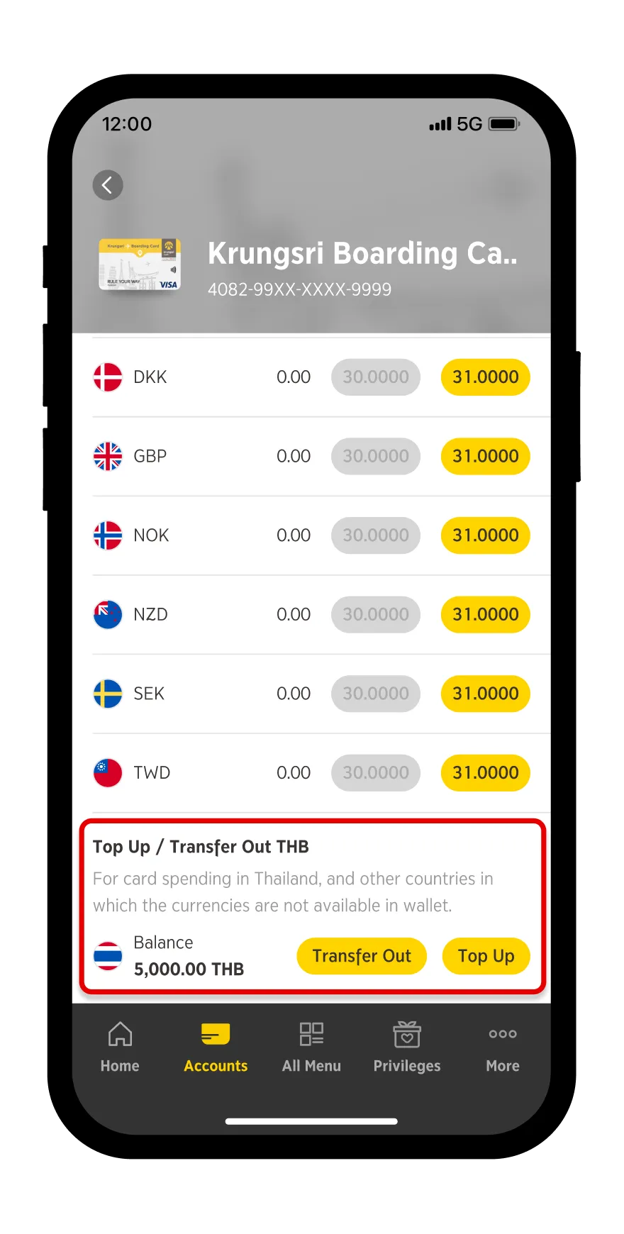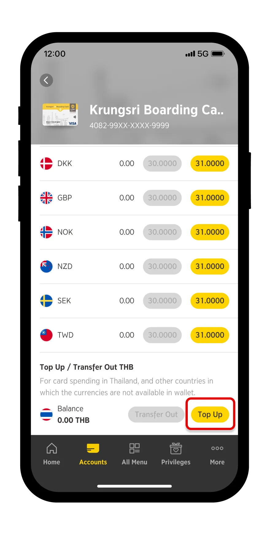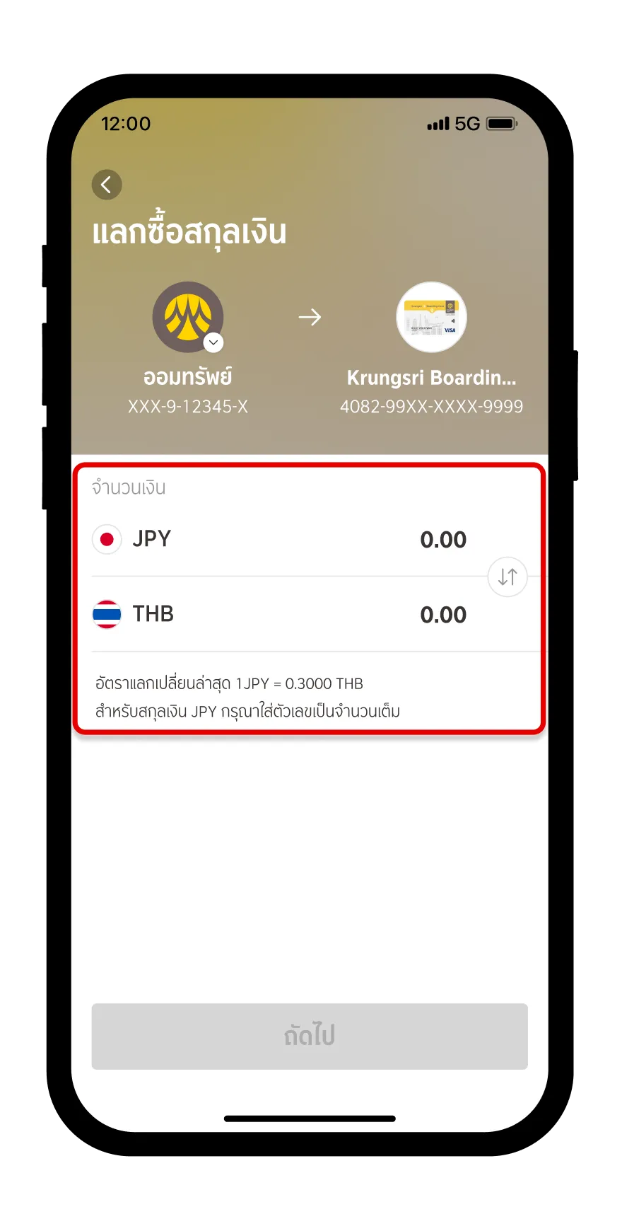Case 1: If the cardholders don't want to sell the existing currencies in the card, and prefer to continue using the card, then they card apply the new card through krungsri app. The remaining balance from the expiry card will be transferred to the new card at the same amount upon new card activation.