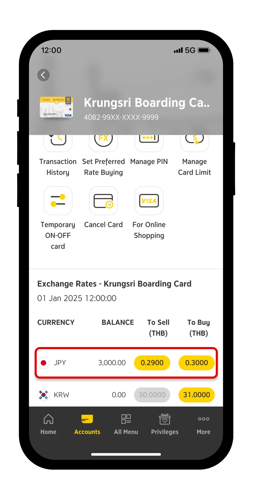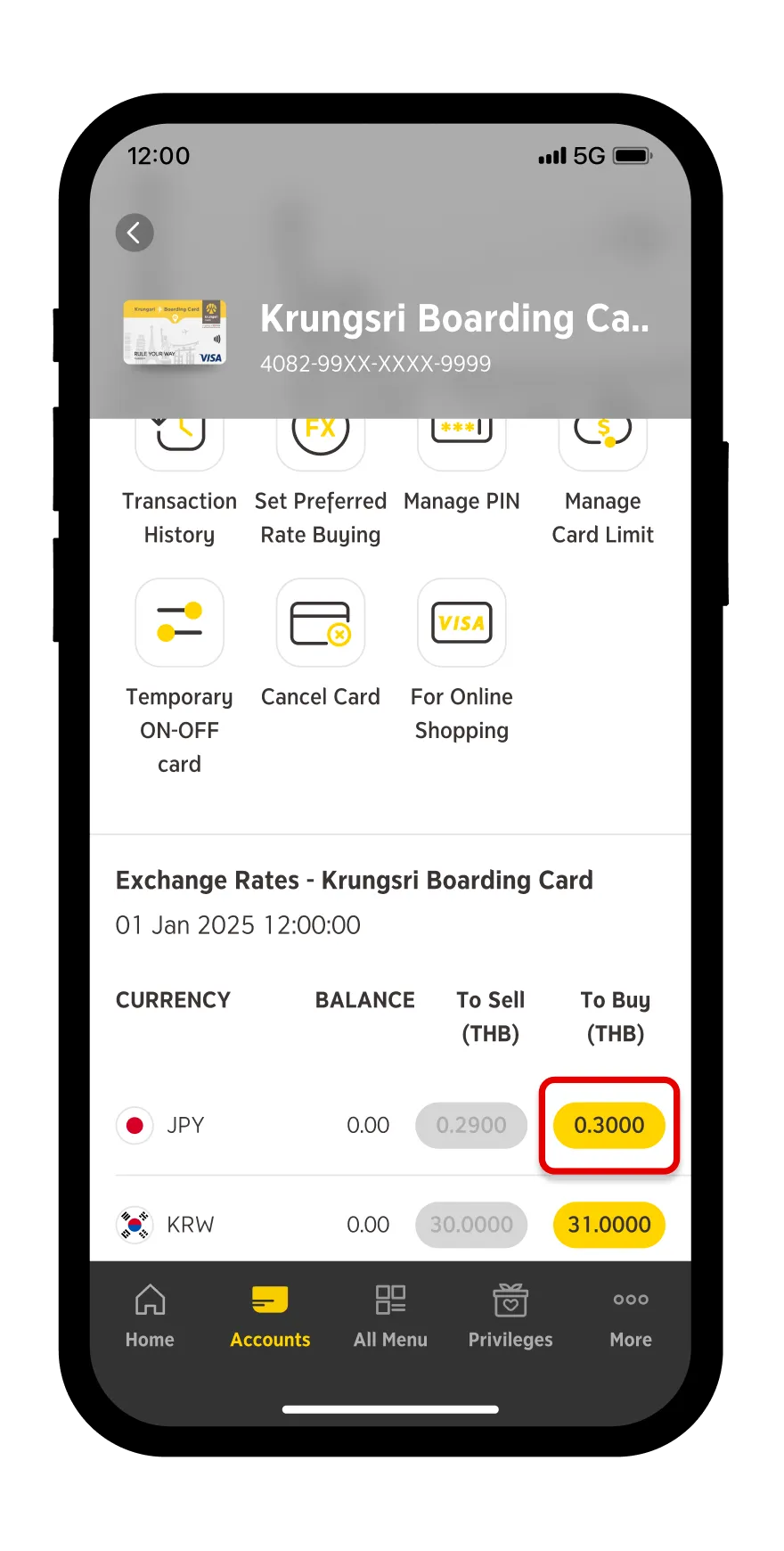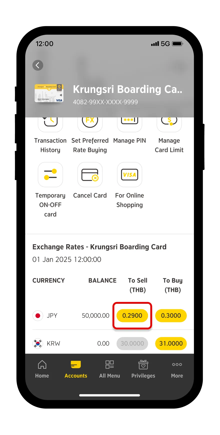 You can check the latest foreign exchange rates of Krungsri Boarding Card via krungsri app or just scan the QR Code on the back of the card.