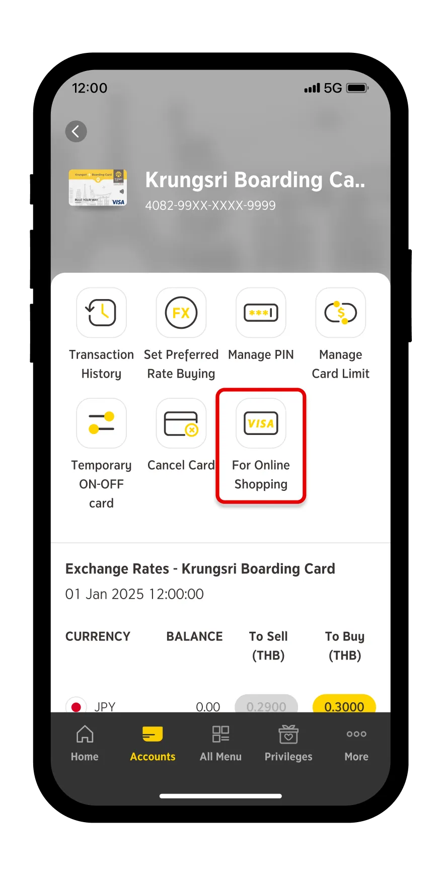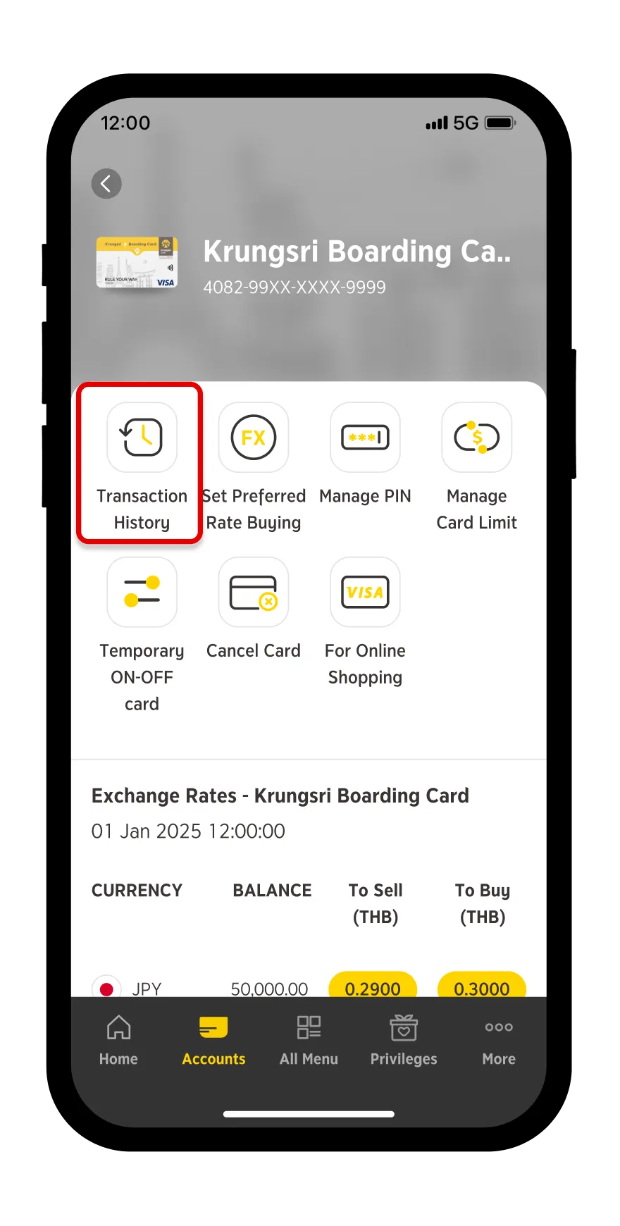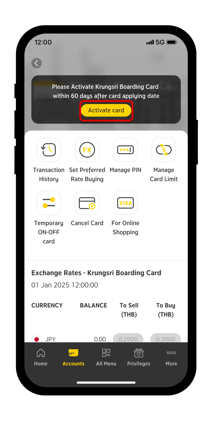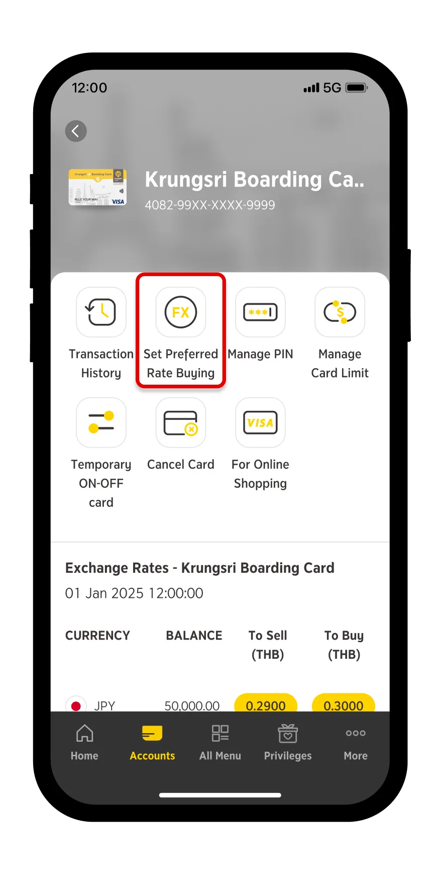You can check the latest foreign exchange rates of Krungsri Boarding Card via krungsri app or just scan the QR Code on the back of the card.