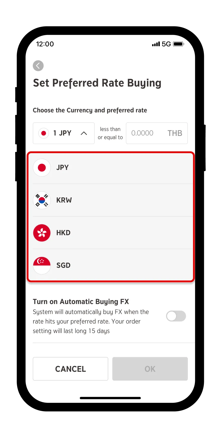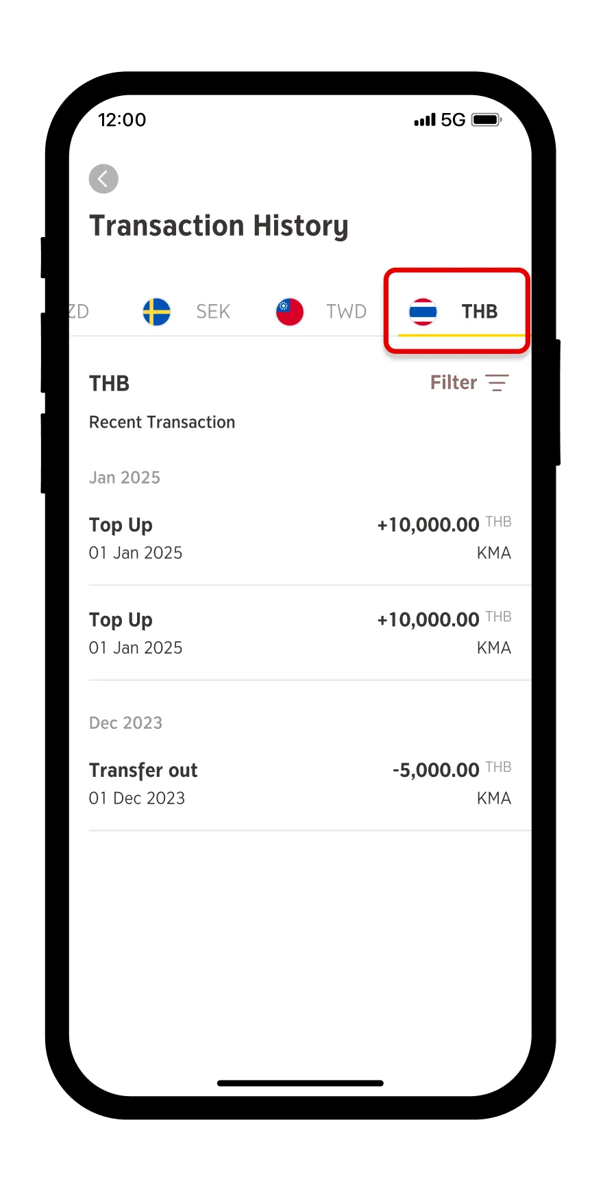 Case 2 : You can withdraw cash in currencies other than the 16 available currencies, provided that you have sufficient Thai baht in the card for withdrawal.