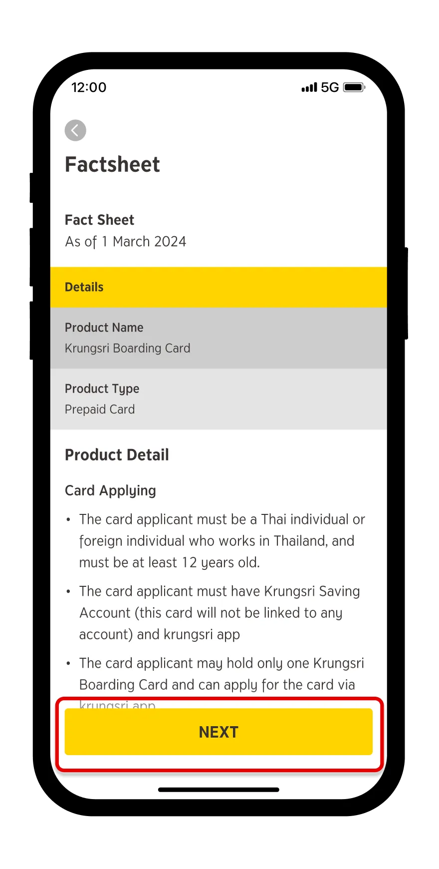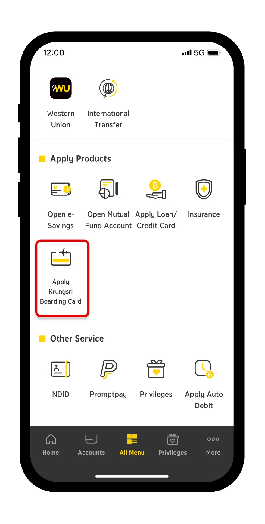 1.Click at the Applying Menu “Krungsri Boarding Card in the first screen of krungsri app