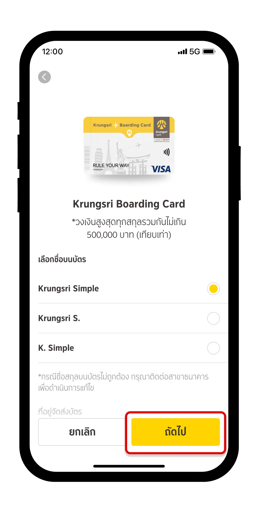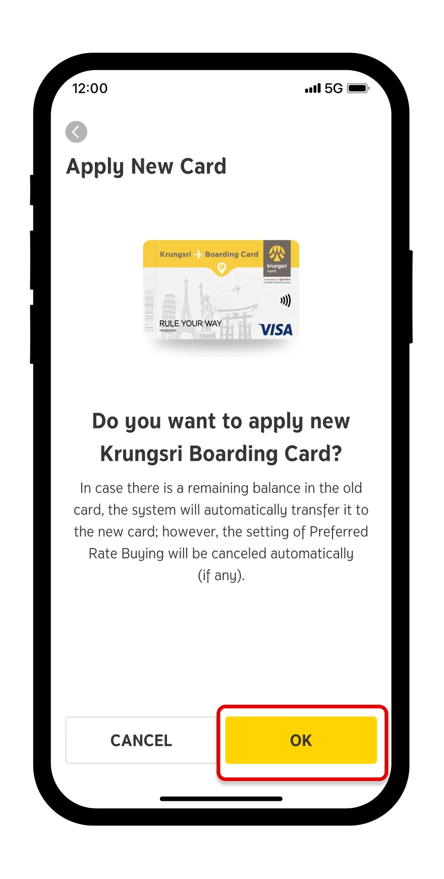 2.The system will confirm whether you want to apply new Krungsri Boarding Card?, then click “OK”