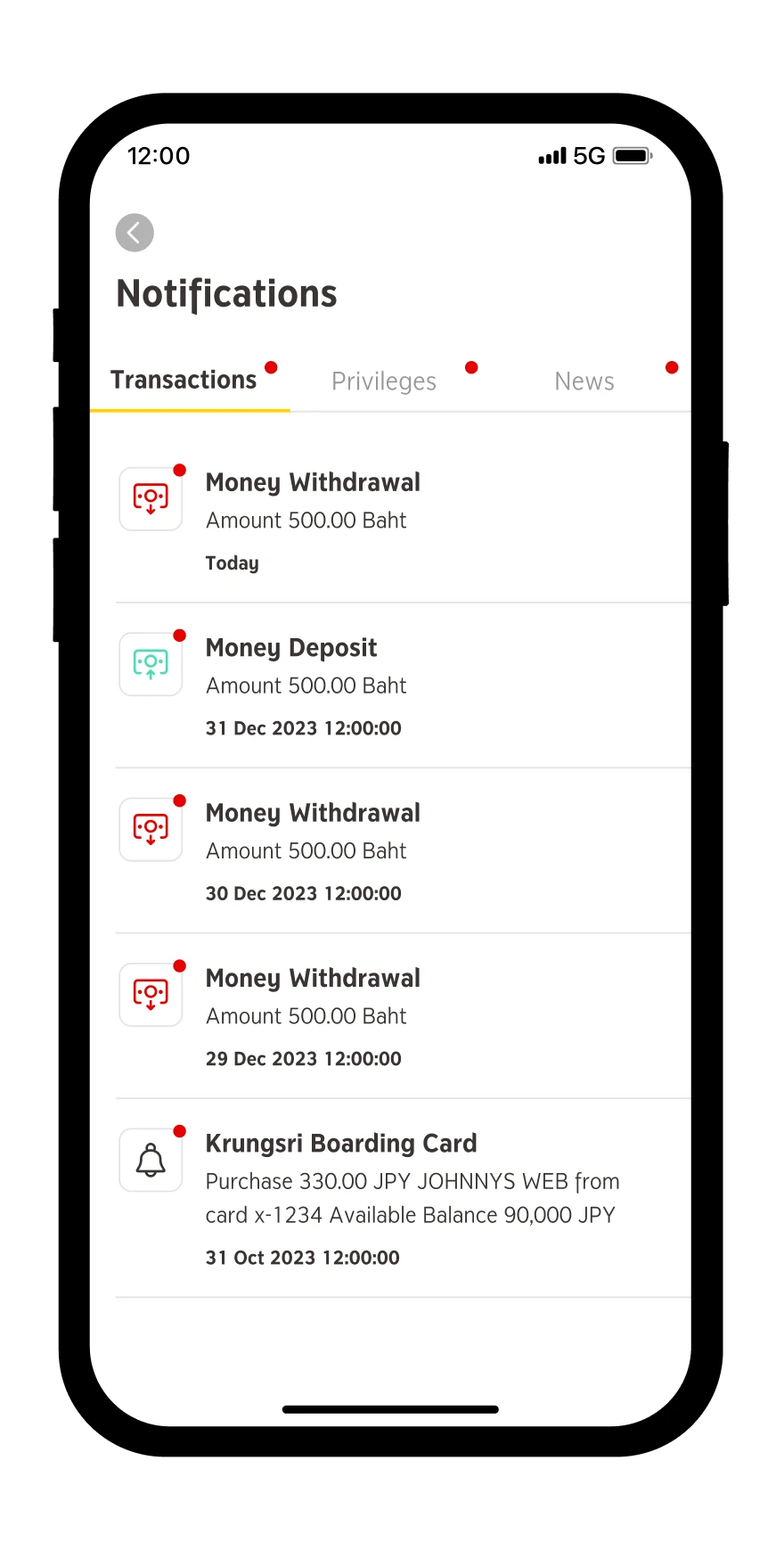 Transactions ensures you will not miss any activities from your account on krungsri app.