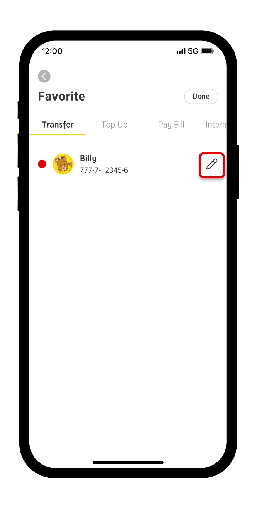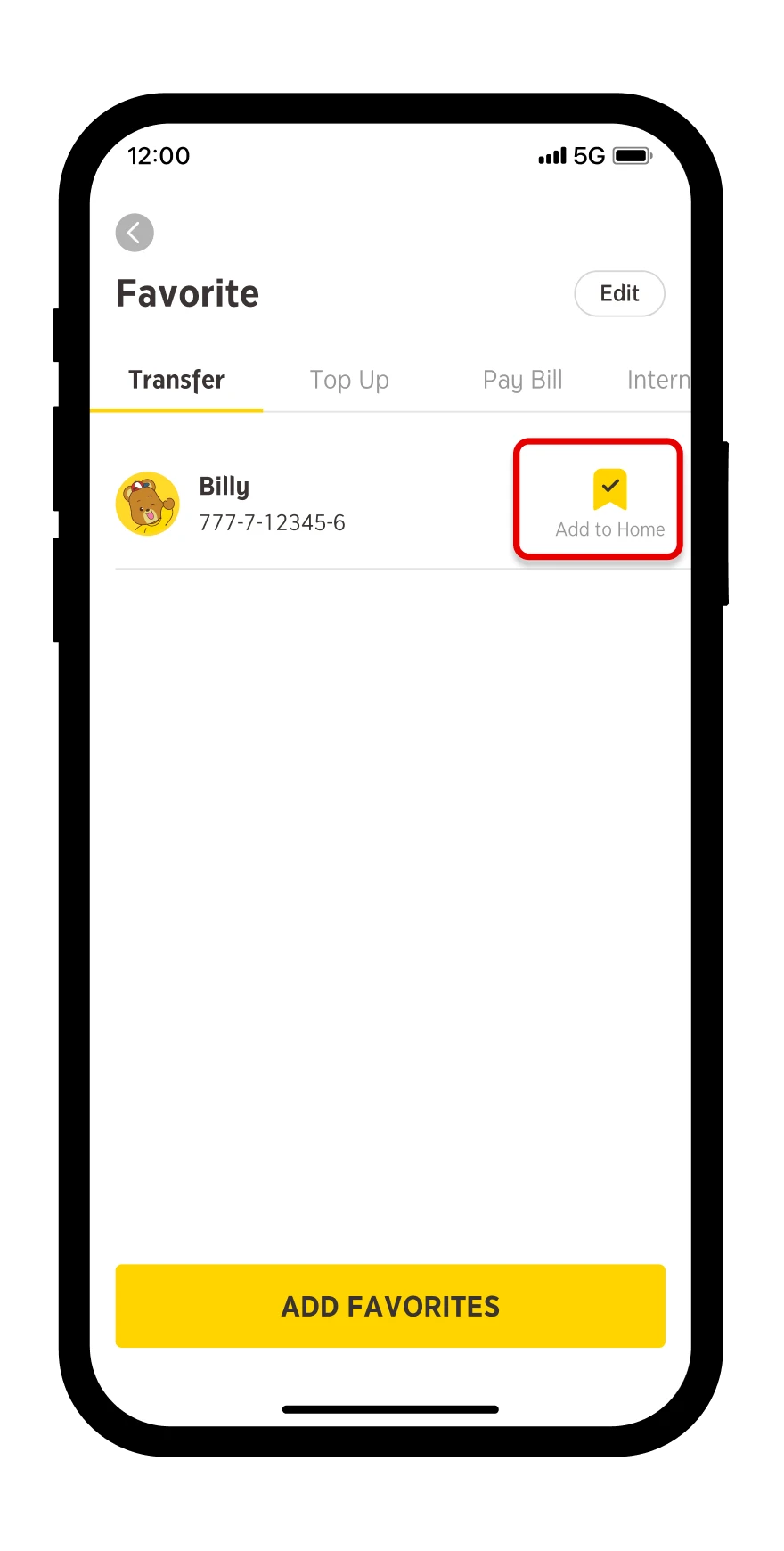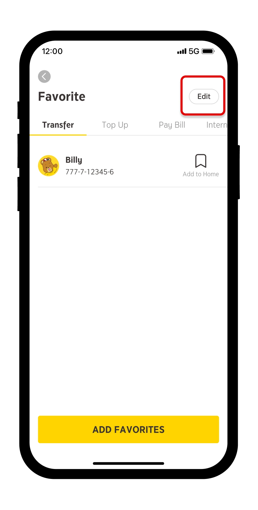 Manage a favorite by selecting “Edit”