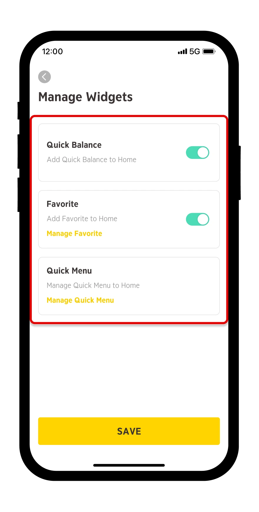 Slide the toggle to open widgets you want to display on Home and press "Save".