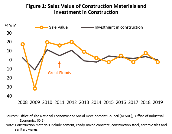 Construction supplies are crucial upstream components for the construction and real estate sector. The construction supplies industry normally moves in line with these two sectors (Fig. 1) because about 60% of construction costs are for materials (Input-Output Table, 2010).