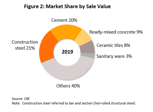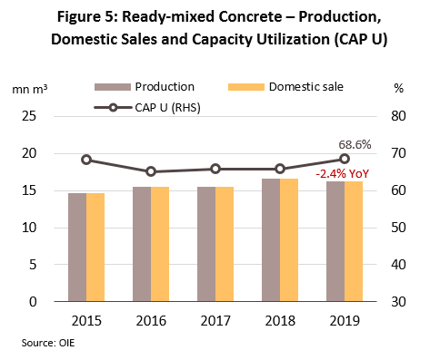 Ready-mixed Concrete: Demand in the Thai market is expected to fall by 0.3% in 2020 but recover to grow by 4-5% in each of 2021 and 2022, lifting total domestic demand to 16 million cubic meters/year (Figure 18). Manufacturers will benefit from the anticipated increase in public and private sector construction spending.