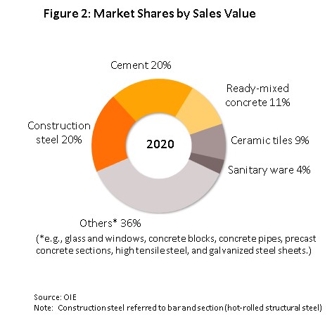 Basic building materials such as cement and construction steel remain important product groups for this market. However, prefabricated building materials (e.g., precast concrete flooring) are increasingly making inroads as operators look to cut construction periods and reduce labor costs, for example, over 2017-2020, sales of these grew at an average rate of 5.1% per year.