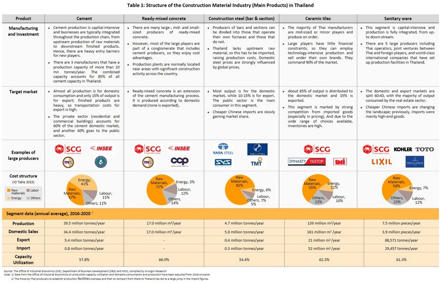 [4]Calculations of the quantity of construction materials distributed to the market are based on figures for cement, ready-mixed concrete, tiles, sanitary wares and construction steel. Together, these account for 60% of the market for building materials in Thailand.