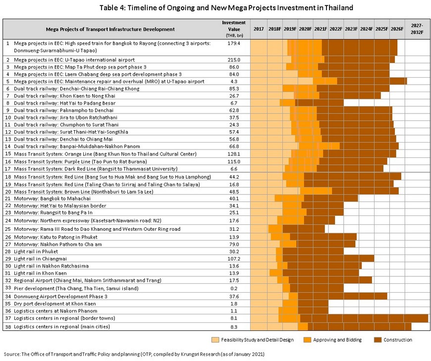 Ceramic tiles and sanitary wares: The forecast is for the domestic market to recover and for the quantity of goods distributed within Thailand to rise, especially in 2022 and 2023 when an uptick in work on government infrastructure megaprojects (Table 4) will help to lure crowding-in effects in private construction in high- and low-rise residential accommodation. The latter will be particularly concentrated along extensions to Bangkok’s mass transit system and in suburban areas on the outskirts of the city.