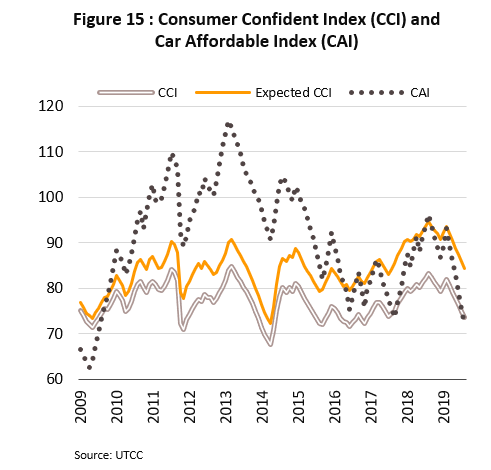 - Consumer confidence is tending to worsen and because of this, buyers may postpone purchases of new vehicles. The new car affordability index, which indicates consumer willingness to buy new vehicles, typically moves in parallel with the consumer confidence index, and data from the 3rd quarter of 2019 shows that the latter has been falling steadily on fears over uncertainty in the world economy and the lack of clear signs of economic growth domestically. At the same time, the car affordability index also weakened and touched its lowest level since 2009, while the majority of respondents to a survey believed that now was not an appropriate time to purchase a new car (Figure 15).