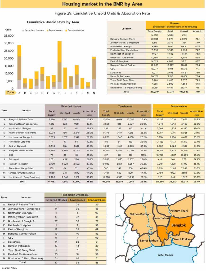 Low-rise (detached houses and townhouses): Buyers are increasingly concluding that low-rise developments provide a long-term solution to their need for access to more usable space and a wider range of room functions, and so demand should continue to rise steadily. In particular, low-rise developments in suburban locations will tend to attract more interest because: (i) their low price compared to downtown areas, the ability of developers to split developments into different phases, unlike condominiums that have to be completed in full before any units can be transferred; and (ii) outer parts of the BMR are becoming more accessible through the extension of mass-transit lines, including the Light Red Line (Bang Sue-Taling Chan), the Pink Line (Khaerai-Minburi), the Yellow Line (Lat Phrao-Samrong) and the Orange Line (Ramkamhaeng-Lam Sali).