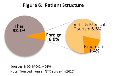 [4] From a 2017 survey of private hospitals (based on 2016 operating result); the survey is carried out every five years by the National Statistical Office, the Ministry of Digital Economy and Society.