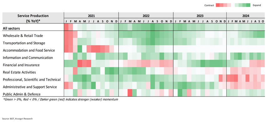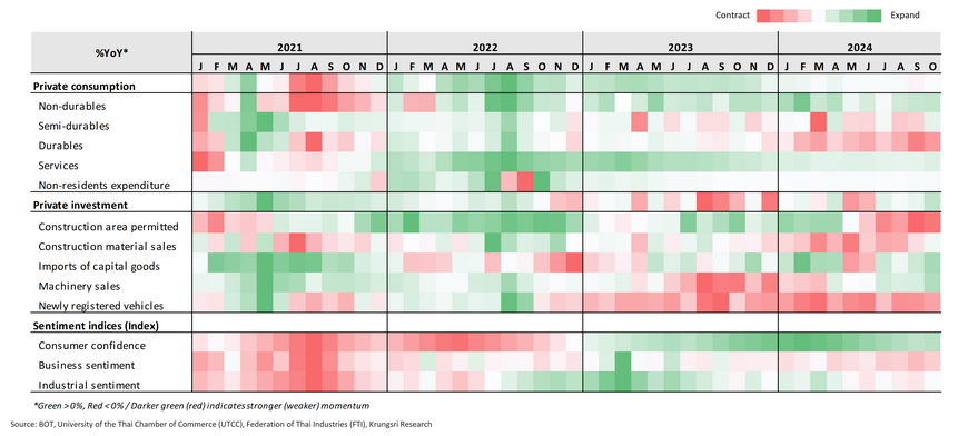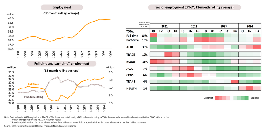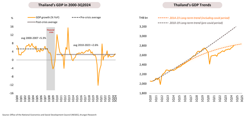 Krungsri Research expects the MPC to cut policy rate to 2.0% by 1Q25, to ease financial strain and nurture economic recovery. Headline inflation is projected to rise to 1.0% in 2025, given improving domestic demand through private consumption, tourism, and government spending.