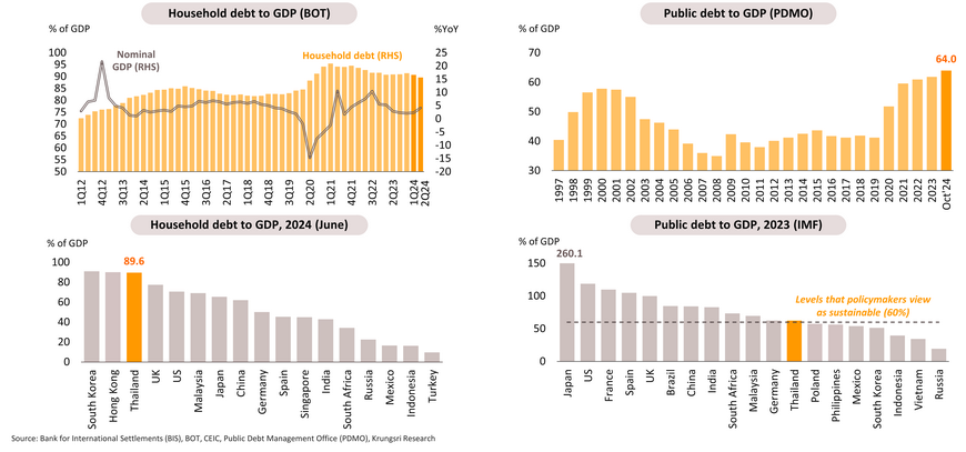 The Thai economy is on track to achieve normalized growth next year, estimated at 2.9%, driven by higher government spending and a record-high budget deficit at 4.5% of GDP, alongside recovering tourism activity to pre-pandemic levels. However, the growth momentum would be capped by domestic and external headwinds, such as high household debt and uncertainty over US trade policy.