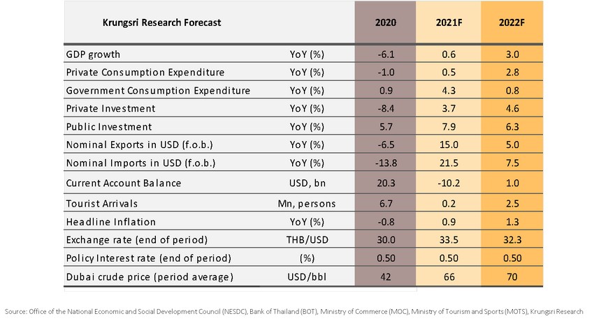 Falling number of daily cases and fatalities in the past few weeks have prompted the Thai government to ease containment measures. Dine-in is allowed and they have relaxed restrictions on internal movement subject to social distancing and other containment measures. The relaxation of measures would help to restart economic activities and reduce further economic losses. However, that could also increase risk of another spike in daily cases. Krungsri Research expects the government to continue to ease measures cautiously the rest of this year (see table below). In addition, there is still a need for containment measures, including clear communication, wearing a mask, a track & trace system, and the mass vaccination program.