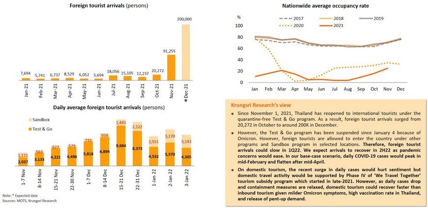 Government has only raised COVID-19 alert from level 3 to level 4 and expanded the list of restricted areas to 69 provinces (Orange Zone). As at January, 9, there are 8 provinces in the Blue Zone, which are considered as safe tourism zones. However, the containment measures are less stringent than last year. This means smaller impact on domestic economic activities than during previous waves.