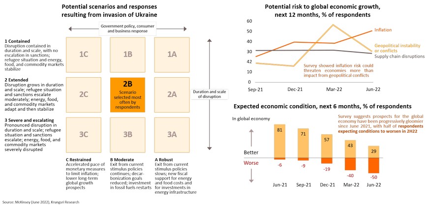 Survey suggests Ukraine war will continue to disrupt supply, moderate response; inflation could threaten economies more than geopolitical risks; sentiment is worsening
