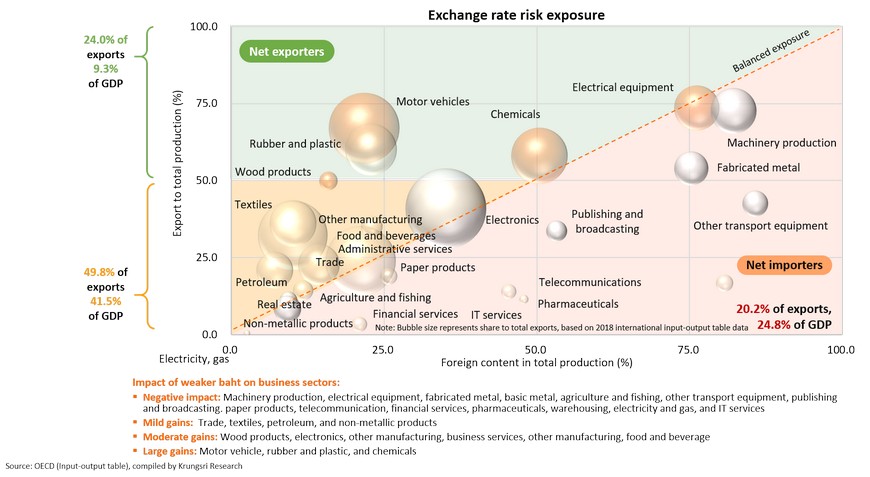 - Net exporters could benefit from a weaker baht but gains would depend on the size of external and domestic markets.