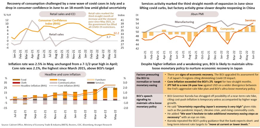Japan: Services activity has rebounded since lifting covid restrictions but overall recovery is capped by new cases, global uncertainty, supply disruption, and higher prices & costs