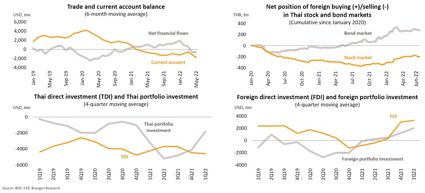 The US dollar index has risen 13.0% year-to-date. In the first 5 months of this year, Thailand’s current account posted a deficit of USD8.9bn and registered USD7.9bn net outflows. All these factors had exerted downward pressure on the baht.