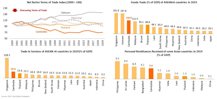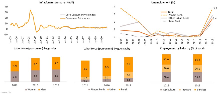 Inward FDI is expected to resume its upward trend should the outbreak subsides. FDI inflows from major sources, especially from China, to key sector such as construction and real estate are likely to surge. In addition, Cambodia could benefit from FDI diversion from Myanmar.