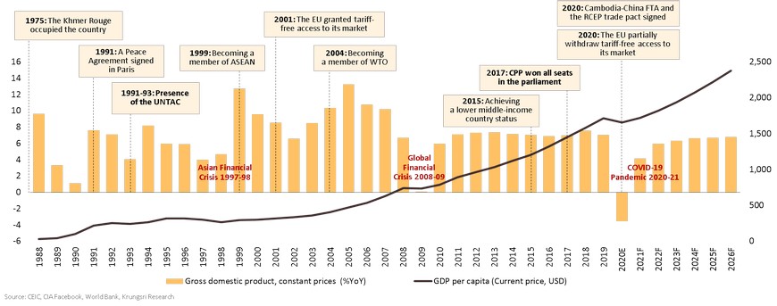 It is widely recognized that Prime Minister Hun Sen, who is now 68 years old, faces no challenge to his position until the next general election in 2023. And, going forward, his party, Cambodian People's Party (CPP), will remain in power. As a result, political stability in Cambodia will be ensured. We also view that the current administration will continue to adopt the economic liberalization approach and pursue policies that are friendly to foreign investors to help attract inward FDI to boost the economic recovery in the post COVID-19 era.