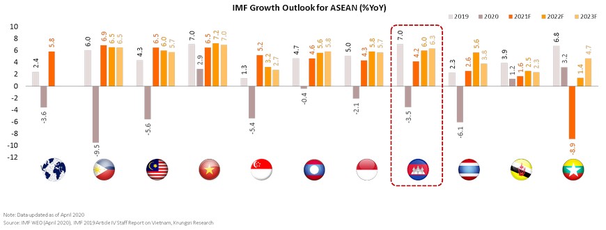 Among the key growth drivers of Cambodia, we view that exports of manufactured products, particularly garment and footwear products, will be the key in supporting the recovery in 2021 owing to the normalization of economic activities in Cambodia’s major markets including the US, and the EU. Construction dominated by real estate developments is expected to be resumed in 2H2021 if new infected cases of the COVID-19 subside along with a higher number of vaccination and mobility restriction measures are eased.