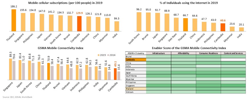 Cambodia is another country that have a large young and tech-savvy consumers, and they are embracing new technological trends to become indispensable parts of their lifestyles. Against this backdrop, it would help drive the digital economy such as e-commerce and digital financial services to flourish. While the number of consumers using the internet is relatively low compared to that of peers, this means that there is more room to grow as the ownership of smartphone and mobile cellular subscriptions are high. In terms of digital infrastructure, it has been improved considerably reflected by higher GSMA Mobile Connectivity Index.