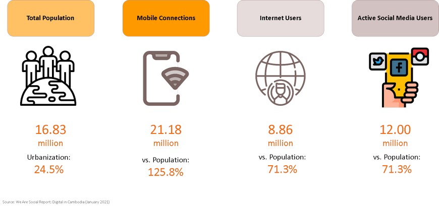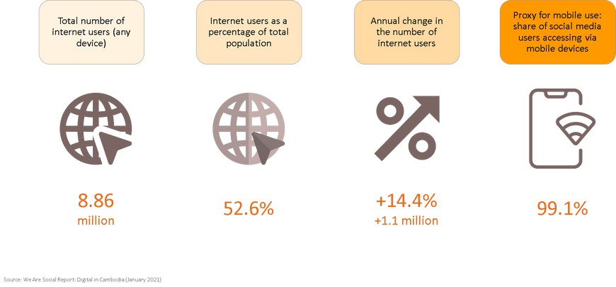 In line with other countries in the region, e-commerce, especially mobile commerce, and digital financial services in Cambodia are among the sectors that will grow rapidly as consumers are adapting to the new normal of the post-pandemic world. While the number of the unbanked population remains large, higher adoption of digital financial services such as e-wallets and mobile money would promote greater access to financial services. And this will in turn fuel the growth of mobile commerce.