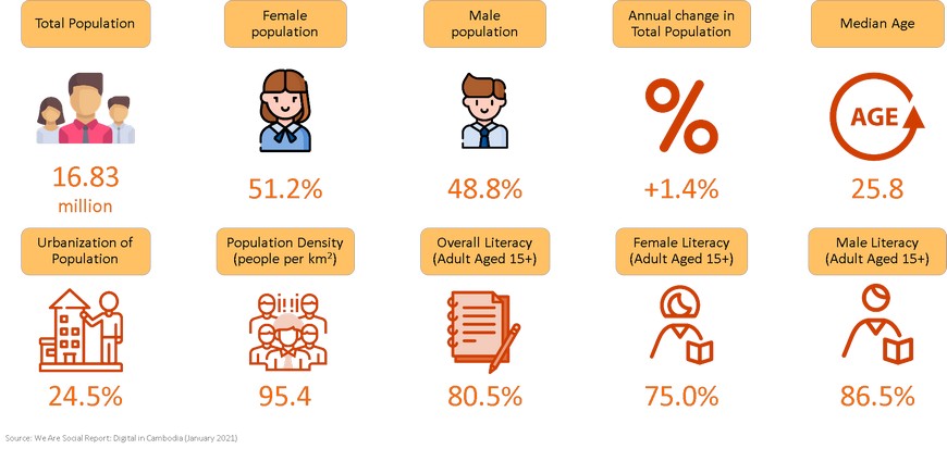 While the total population of about 17 millions may be considered relatively small, an unserved domestic market is sizeable and growing. As a result of sustained and strong growth in the past two decades, Cambodia is currently a lower-middle income country with the annual GNI per capita of 1,480 USD (as of 2020). And income levels of labor force are expected to be higher in the periods ahead as economic growth will remain strong. The increase income levels will shape new patterns of domestic demand.