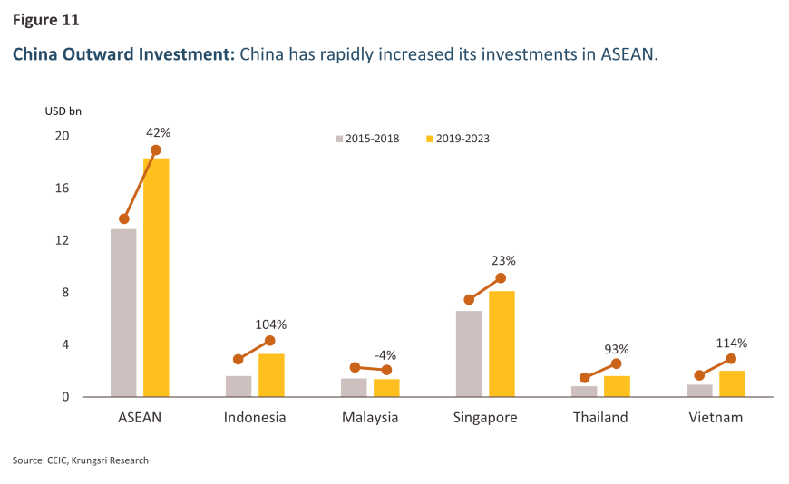 Although China currently holds a smaller share of investment in ASEAN's manufacturing sector compared to the U.S. and the European Union, we have started to see an increase in China's investments in ASEAN since 2018, the year when trade tensions between the U.S. and China began.