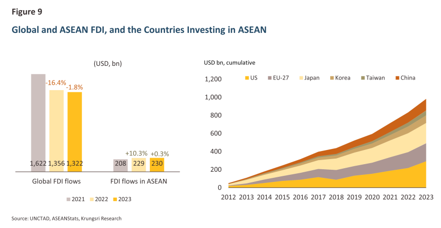 In recent years, the trend of FDI in ASEAN has been heavily influenced by changes in global megatrends, particularly the trend of deglobalization and the trade tensions between the U.S. and China.1/