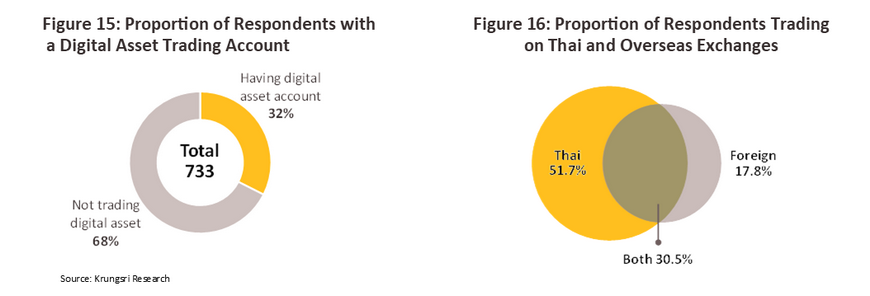Around half of those respondents who had a trading account (approximately a third of all respondents) reported trading in digital assets only on Thai-based platforms or exchanges7/, while just 17.8% of account holders said that they traded exclusively on foreign-based exchanges.