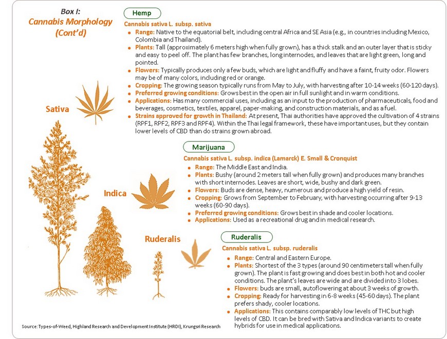 [6] This includes approved varieties (though those that are licensed for growing in Thailand are used for harvesting fiber only), Thai varieties that are not approved and imported varieties. Varieties that may be used may not have a THC content greater than 1.0% of dried plant matter.