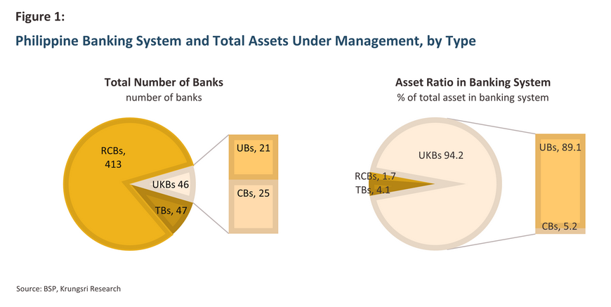 Thrift banks (TBs): These provide home loans, other types of short- to medium-term credit, and other financial services to retail customers.