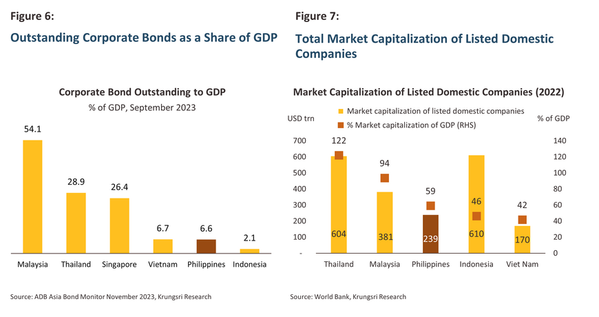 Compared to its regional peers, the Philippine banking sector is somewhat large, and this reflects the fact that corporations typically remain relatively disengaged from bond and stock markets and instead rely on large banks as sources of capital. Although the microfinance initiatives, the development of the fintech industry, and government efforts have helped to broaden access to financial services for retail customers and small businesses, collaboration from the banking sector is crucial to enhance the efficiency of capital allocation and to boost economic potential.