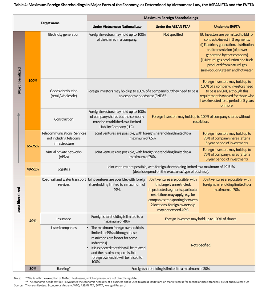 Together with the increased cooperation in other spheres as set out in the EVFTA, liberalizing services and investment will continue to have positive impacts on Vietnam over the long term.