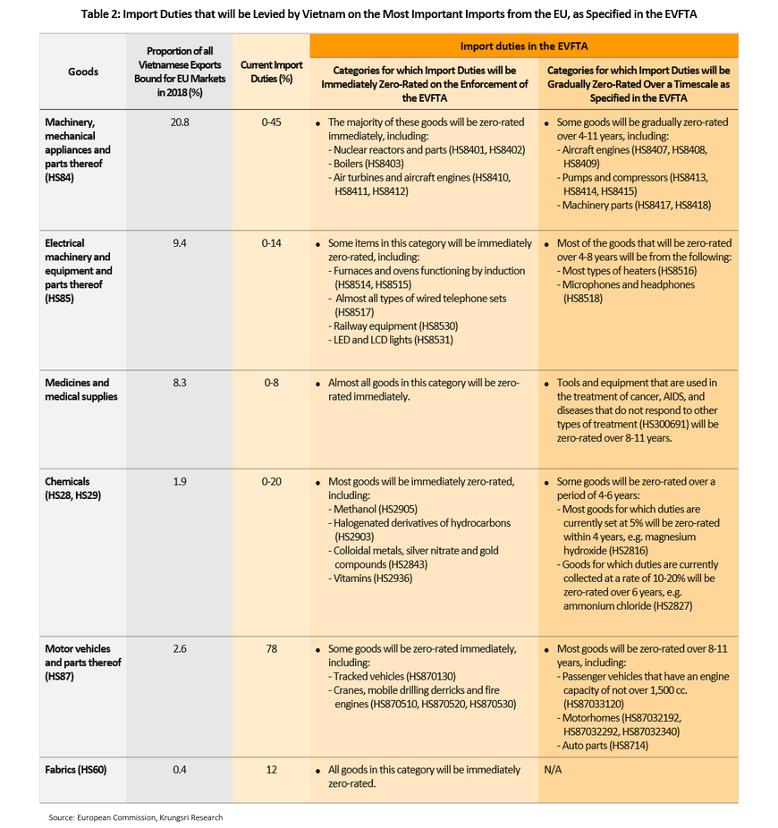 The difference in the time periods over which EU imports will be zero-rated by Vietnam reflect the different roles played by these goods in the Vietnamese economy.