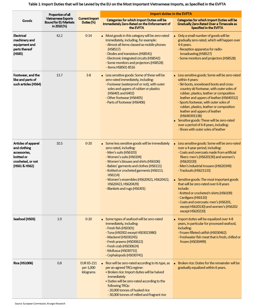 The benefits arising from the EVFTA will not just originate in the zero-rating of Vietnamese exports to the EU. Rather, Vietnam will also benefit from the lower cost of its goods and Vietnamese exporters will be presented with increasing opportunities to integrate into EU supply chains, while the additional provisions of the agreement, which are more far reaching than any of Vietnam’s other FTAs, will help to facilitate the entry of foreign investors into government auctions for public contracts, to reduce the influence of state monopolies and to develop fair competition in Vietnamese markets. Raising standards in this way will then help to build competitiveness in the economy and this will provide Vietnam with an important opportunity for boosting exports, attracting greater investment inflows and developing the economy.