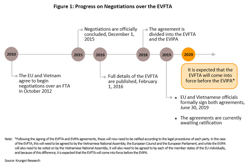 [3] The latest situation with other EU-ASEAN FTAs is that the EU-Singapore FTA (EUSFTA) has been agreed and will soon be enforced, the Philippines and Indonesia are currently negotiating with the EU, and Malaysia has temporarily suspended its negotiations (source: Ministry of Foreign Affairs). As for Thailand, the government is considering the possible costs and benefits for the country of negotiating an FTA and is in the process of gathering opinions from smaller stakeholders in preparation for restarting discussions with the EU over a prospective Thai-EU FTA (source: Department of Trade Negotiations, November 21, 2019).