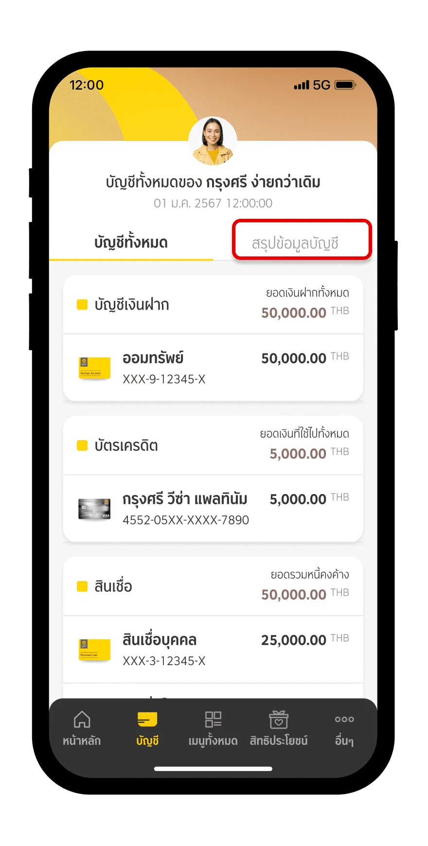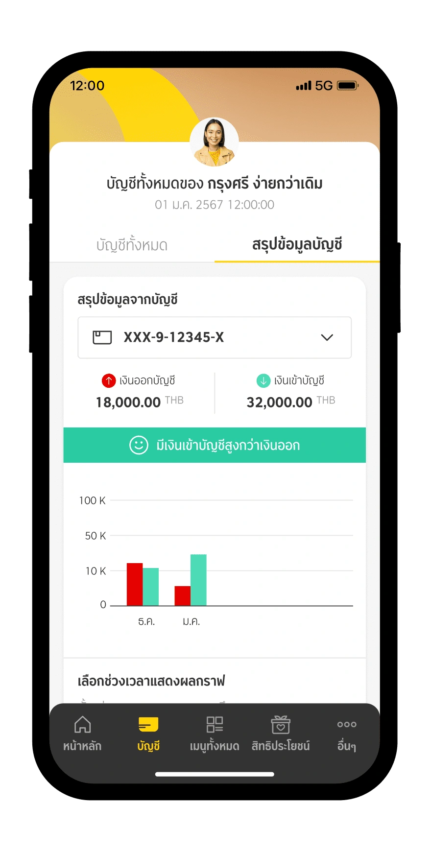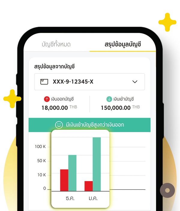 คุณสามารถเลือกบัญชีที่ต้องการดูข้อมูลการสรุปได้ แม้ว่าคุณจะมีหลายบัญชีก็ตาม