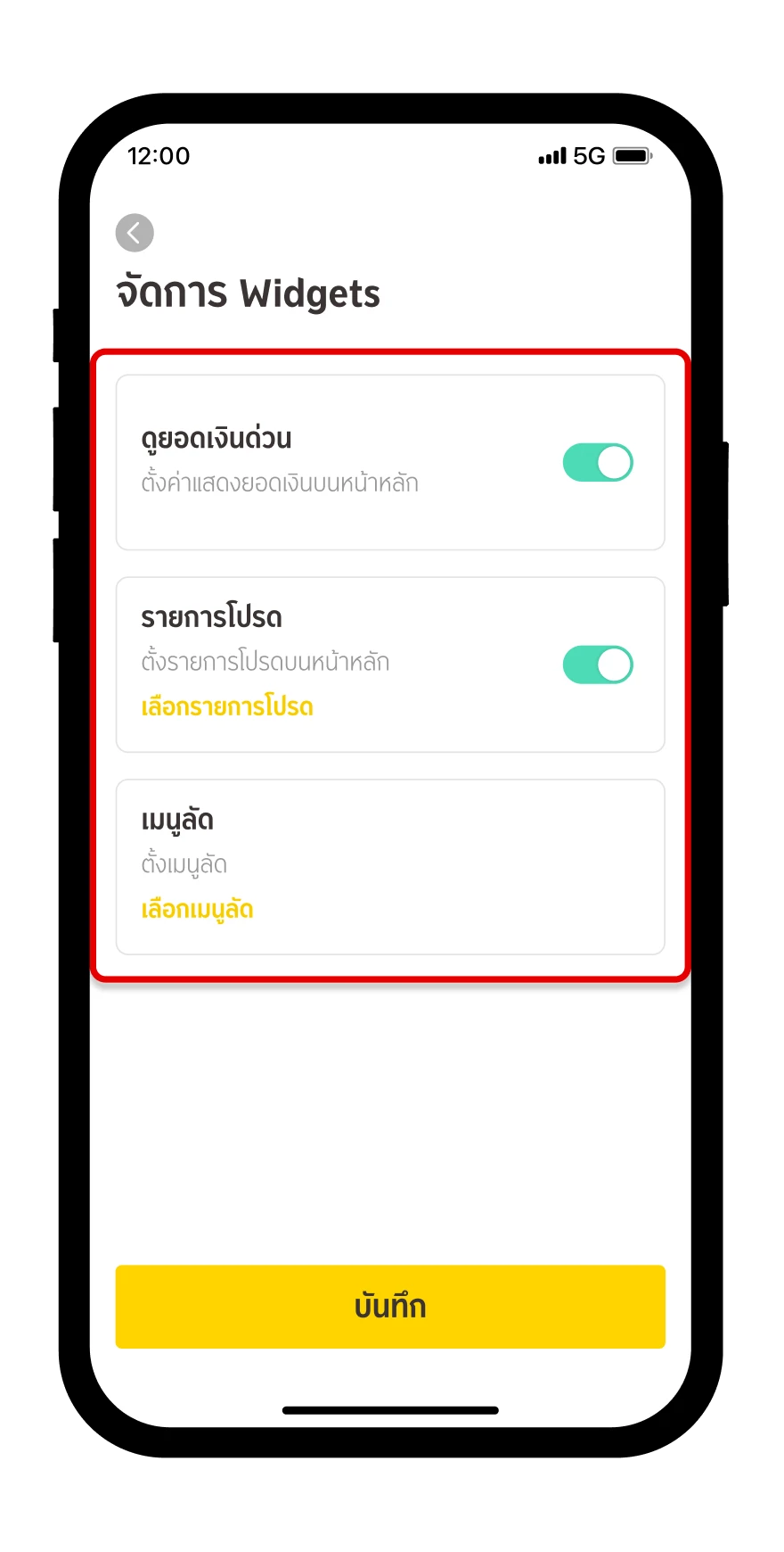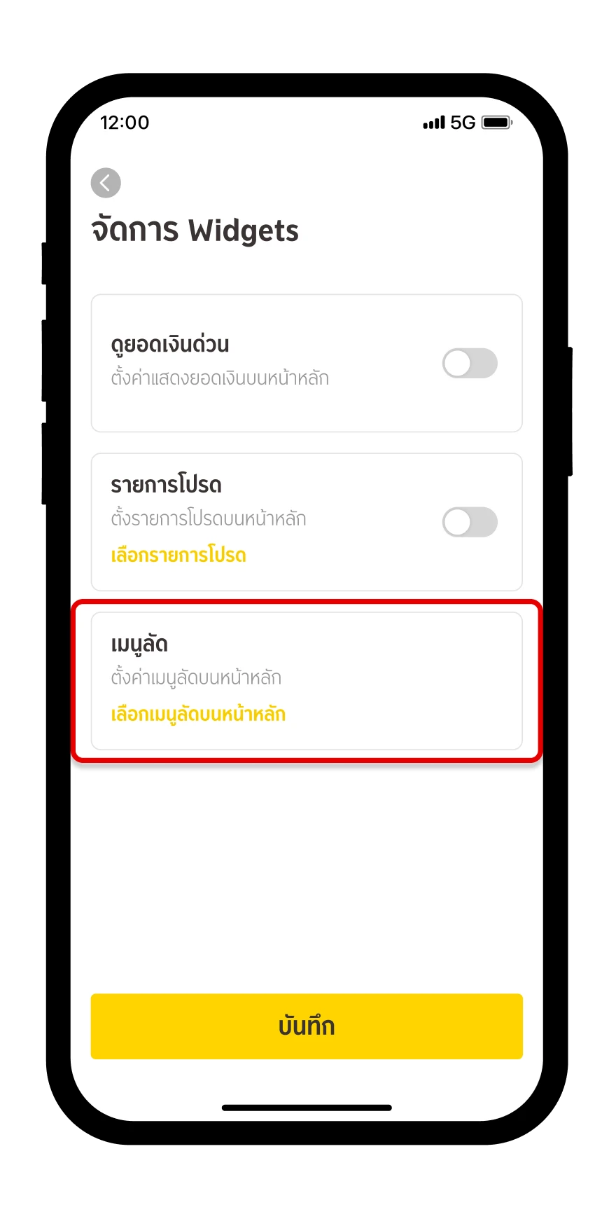 เลือกเปิด Widgets ที่ต้องการให้แสดงหน้าหลักและกดบันทึก