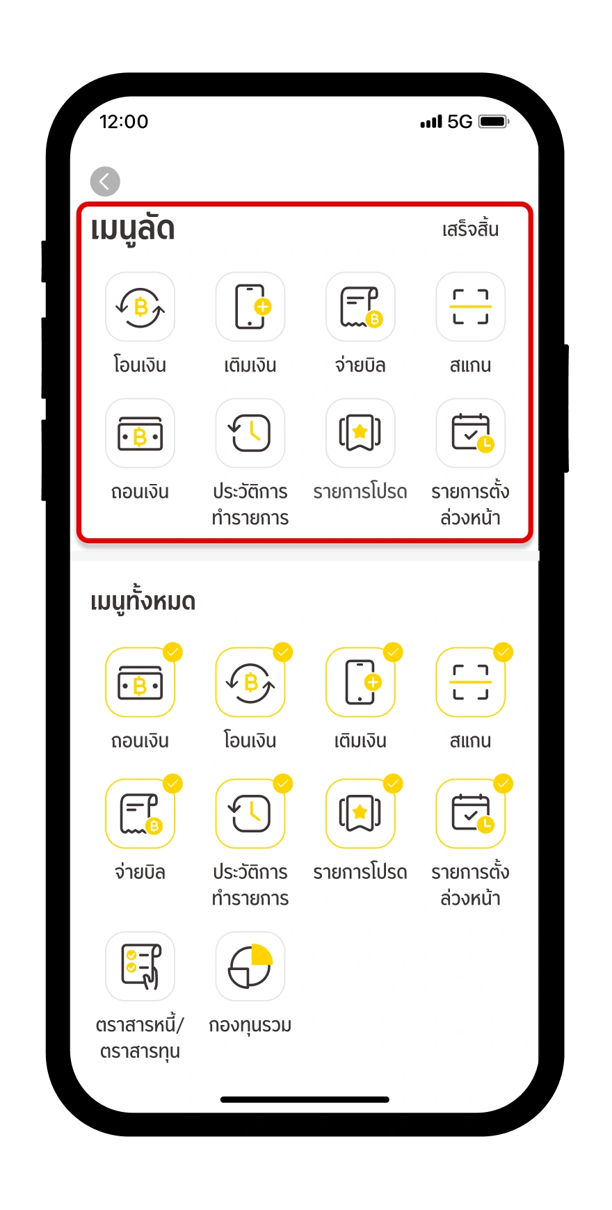เลือก ธุรกรรมที่คุณต้องการจาก "เมนูทั้งหมด"