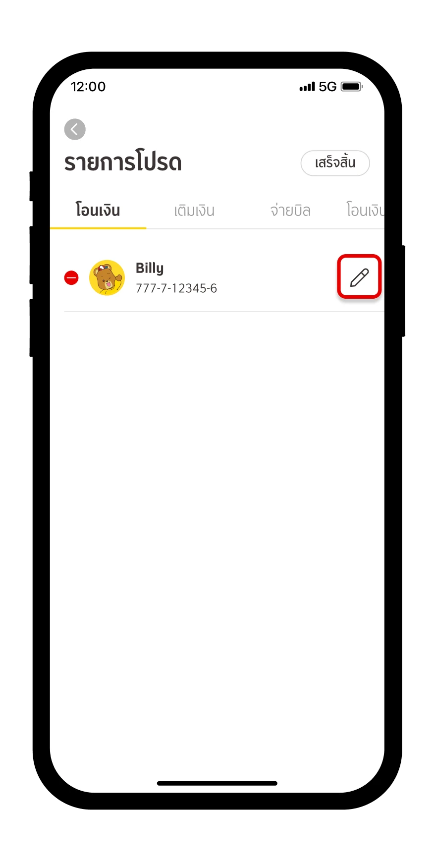 สามารถจัดการรายการโปรดโดยเลือก “แก้ไข”