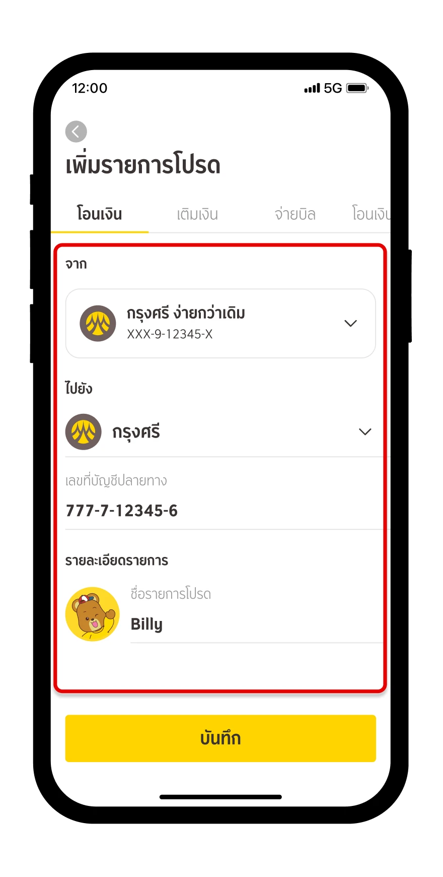 ระบุข้อมูลรายการโปรดของคุณ แล้วกด "บันทึก"